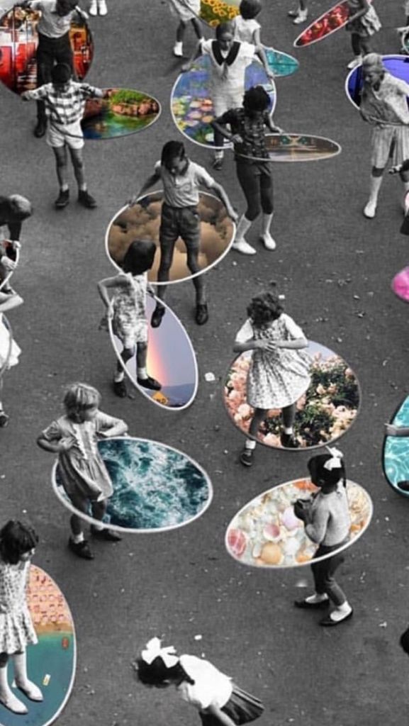 Mi sbilancio: è una delle mie tecniche preferite. Se ci pensate, chiunque l’ha già usata. Se avete incollato due foto insieme o decorato una foto con scritte o ghirigori, eccovi esperti in collage! Possiamo anche pensare alle lettere di riscatto degli anni 80, per chi è appassionato di true crime… Il collage permette di creare un mondo visivo senza avere delle competenze di disegno. Bisogna solo avere un’idea e un po’ di perseveranza. Inoltre, può trasformare una foto che è venuta non così bene in qualcosa di spettacolare! |